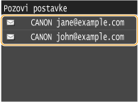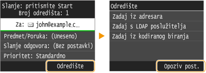 Kao odredište možete odabrati jedno od tri prethodno korištenih odredišta. Kada definirate prethodno korišteno odredište, uređaj postavlja iste postavke skeniranja (na primjer gustoću) koje ste koristili pri zadnjem slanju dokumenata na to odredište.