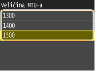 U većini Ethernet mreža maksimalna veličina paketa koji se može poslati iznosi 1500 bajtova. Paket su manje količine podataka na koje se izvorni podaci dijele prije slanja. Maksimalna jedinica za prijenos (MTU) razlikuje se od mreže do mreže. Promijenite postavke uređaja prema potrebi. Dodatne informacije zatražite od mrežnog administratora.