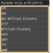 Priključci služe kao krajnje točke za komunikaciju s ostalim uređajima. Obično se za glavne protokole koriste uobičajeni brojevi priključaka, no uređaji koji koriste te brojeve priključaka podložni su napadima jer su ti brojevi priključaka općepoznati. Administrator mreže može radi poboljšanja sigurnosti promijeniti brojeve priključaka. Kada se promijeni broj priključka, novi se broj mora razmijeniti s komunikacijskim uređajima kao što su računala i poslužitelji. Definirajte postavke broja priključka u skladu s mrežnim okruženjem.