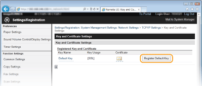 Desno od para ključeva koji želite koristiti kliknite [Register Default Key].