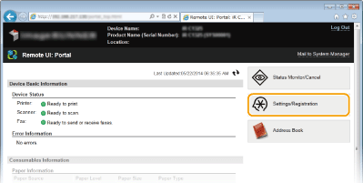 Pokrenite Remote UI (Korisničko sučelje za daljinski pristup), a zatim se prijavite u načinu rada za upravitelja sustava. Pokretanje sučelja Remote UI (Korisničko sučelje za daljinski pristup)