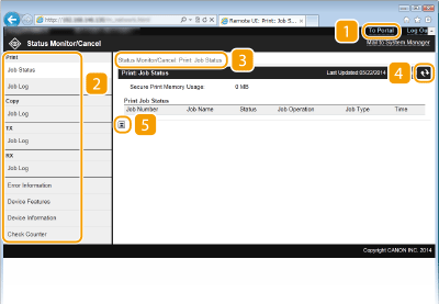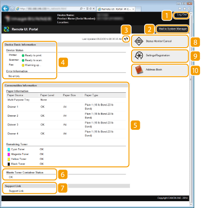 Odjavljuje vas iz sučelja Remote UI (Korisničko sučelje za daljinski pristup). Prikazat će se stranica za prijavu.