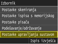 Na popisu se nalaze sve postavke vezane uz postavke upravljanja sustavom s kratkim opisima. Zadane su postavke označene bodežom (  ).