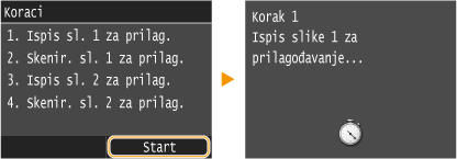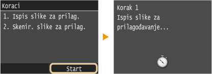 Uređaj skenira sliku za prilagodbu te prilagodba započinje. Prilagodba će završiti za nekoliko minuta.