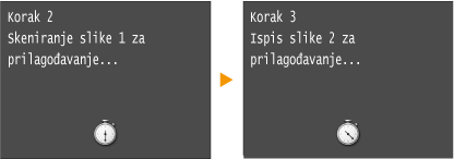 Uređaj skenira sliku za prilagodbu te prilagodba započinje. Druga slika za prilagodbu bit će ispisana nakon desetak sekundi.