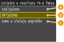 <Izvješće o rezultatu TX-a faksa> ili <Izvješće o rezultatu TX-a za e-poštu/datoteku>