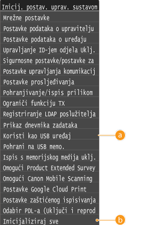 <Mrežne postavke> <Inicijaliziranje mrežnih postavki> <Da>, a zatim ponovno pokrenete uređaj. |