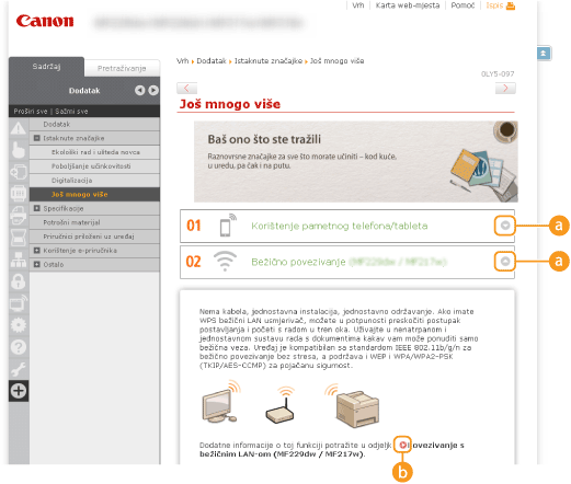 Kliknite da biste vidjeli kako riješiti probleme ili kako održavati uređaj.