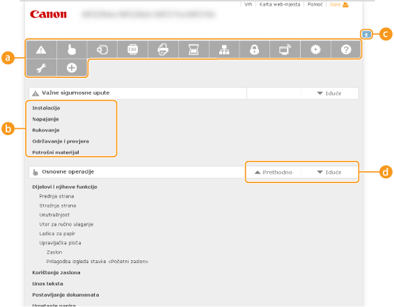 Sadrži informacije o načinu konfiguriranja i korištenja uređaja.