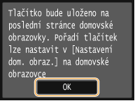 Pokud je obrazovka Domů plná a nelze již uložit další nastavení, buď vymažte mezery pomocí <Nastavení dom. obraz.> na obrazovce Domů, nebo uložená tlačítka uložte. Odstranění tlačítek