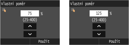 / , můžete klepnutím na tato tlačítka měnit polohu kurzoru.Rozsah hodnotHodnoty v ( ) zobrazené pod polem pro zadávání představují rozsah hodnot, které lze zadat.