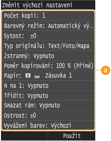 . Změníte-li tato výchozí nastavení podle často prováděných operací, nebudete muset konfigurovat stejná nastavení při každém kopírování.