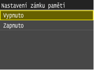 Chcete-li vytisknout dokumenty uložené do paměti, nastavte možnost <Nastavení zámku paměti> na hodnotu <Vypnuto>. Vytisknou se všechny dokumenty uložené v paměti.