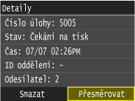 Pokud zůstane funkce Příjem do paměti zapnuta, dokumenty uložené v paměti nebudou ani po přesměrování odstraněny; tzn. stejné dokumenty lze přesměrovat opakovaně.