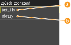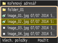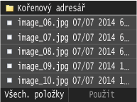 Způsob zobrazení můžete změnit z možnosti <Detaily> (názvy souborů a data úprav) na <Obrazy> (náhledy). Díky náhledu obrázků můžete před výběrem souboru k tisku zkontrolovat obsah souboru.