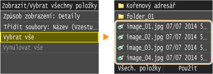 Pokud jste před klepnutím na tlačítko <Všech. položky> vybrali soubor, můžete vybrat pouze soubory stejného formátu.