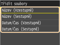 Pokud klepnete na možnost <Datum/Čas (Vzestupně)> nebo <Datum/Čas (Sestupně)>, soubory se budou řadit podle data a času úpravy souborů.