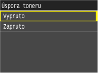 Toto nastavení umožňuje nastavit funkci úspory toneru. Při použití této funkce je pro tisk dokumentů spotřebováno méně toneru, což může vést k delší životnosti toneru.