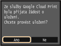 Zařízení lze také zaregistrovat z mobilního zařízení nebo aplikace Google Chrome*. Před dokončením registrace se na displeji zařízení objeví obrazovka s potvrzením. Registraci dokončíte stisknutím tlačítka <Ano>.