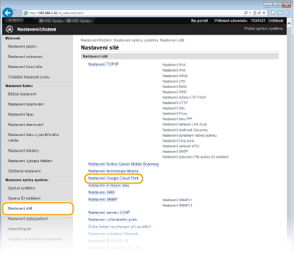Google Cloud Print nepodporuje tisk z adres IPv6.
