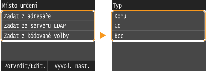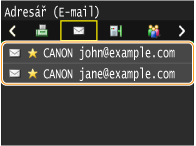 Pokyny k používání adresáře naleznete v části Zadání z adresáře.