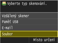 Výběr míst určení pro sdílené složky a souborové servery je omezen na místa určení uložená v adresáři. Pokud nejsou v adresáři uložena žádná místa určení, je třeba je před skenováním do sdílených složek nebo souborových serverů nejprve zadat.