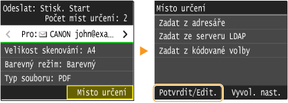 Chcete-li snadno a rychle odstranit místa určení bez jejich vybírání ze seznamu míst určeníPřed výběrem možnosti <Potvrdit/Edit.> v kroku 1 můžete zadaná místa určení přepínat klepnutím na tlačítko