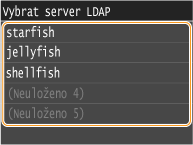 Pokud máte v kanceláři nainstalován server LDAP, můžete vybrat místa určení uložená na tomto serveru. Chcete-li vybrat místa určení, přejděte prostřednictvím zařízení na server LDAP a vyhledejte místo určení.