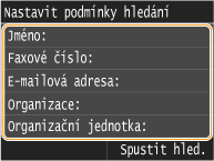 Jako kritérium pro vyhledávání lze použít osobní jméno, faxové číslo, e-mailovou adresu, názvy organizací a názvy oddělení. Současně lze zadat i několik kritérií pro vyhledávání.