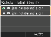 Pomocí číselných tlačítek zadejte kritéria vyhledávání a klepněte na tlačítko <Použít>.