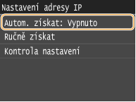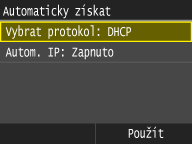 Zkontrolujte, že je možnost <Automatická adresa IP> nastavena na hodnotu <Zapnuto>.