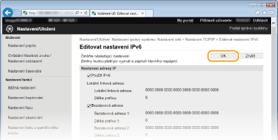 Před konfigurací těchto nastavení musí být zaškrtnuté políčko [Použít IPv6]. Nastavení adres IPv6