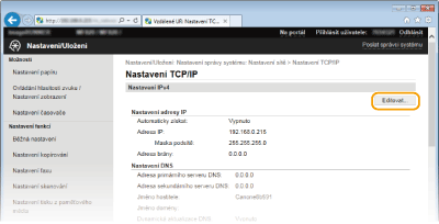 Klikněte na tlačítko [Editovat...] v části [Nastavení IPv4].