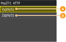 Protokol HTTP se používá při komunikaci přes síť, například pokud přistupujete k zařízení prostřednictvím Vzdáleného uživatelského rozhraní. Pokud používáte připojení přes rozhraní USB nebo z jiného důvodu protokol HTTP nevyužíváte, můžete komunikaci HTTP zakázat, a tím blokovat škodlivé útoky třetích stran, které mohou být vedeny přes nevyužité porty HTTP.