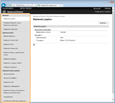 Nastavení v části [Nastavení správy systému] můžete změnit pouze v případě, že jste přihlášeni v režimu správce systému.
