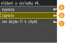 Vyberte, pokud chcete hlášení o výsledku PŘ. vytisknout pouze, dojde-li k chybě příjmu.