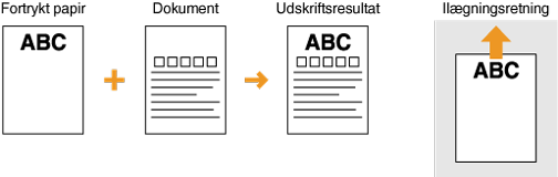 Når du bruger papir med fortrykt logo på, skal du være opmærksom på papirets retning, når du ilægger det. Ilæg papiret korrekt, så udskrivning udføres på den rigtige side af papiret med logo.