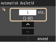 Angiv den tidsperiode, der går, før maskinen automatisk går i dvaletilstand