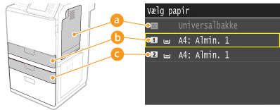 Angiv den papirkilde, der indeholder det papir, du vil bruge til udskrivning af kopier.