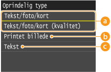 Velegnet ved kopiering af dokumenter, der indeholder både tekst og fotos eller dokumenter, som omfatter detaljerede linjer som f.eks. kort. Med denne dokumenttype kan du også vælge tilstanden, der prioriterer billedkvalitet.