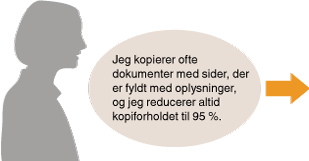 Skift kopiforholdet til 95 %, og registrér det som standardindstillingen. Fra nu af kan du lave kopier uden at ændre kopiforholdet. Ændring af standardindstillingerne