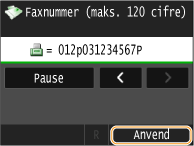 Tryk på <Pause> for at indsætte en pause efter faxnummeret, hvis det er nødvendigt.