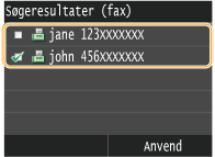 Følgende skærm viser et eksempel, når <Navn> er valgt i trin 4 for at søge efter et navn på en person.