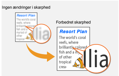 Du kan justere billedets skarphed, før du sender. Øg skarpheden for at gøre sløret tekst og slørede linjer mere skarpe, eller mindsk skarpheden for at forbedre udseendet af fotos fra et tidsskrift.