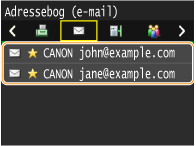 Du skal registrere destinationer i adressebogen, før du kan bruge denne funktion.