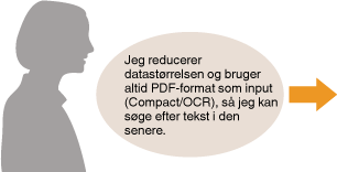Skift filformatet til <PDF (Compact/OCR)>, og registrer det som standardindstillingen. Fra nu af kan du scanne uden at angive nogen indstillinger. Ændring af standardindstillingerne