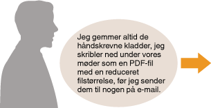 Registrer postadresser og filformater for deltagere som en <PDF (Compact)>-kombination under <Favoritindstillinger>. Du kan derefter nemt bruge denne indstillingskombination, hver gang du har brug for den. Registrering af ofte anvendte scanningsindstillinger (e-mail/delt mappe/filserver)