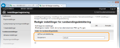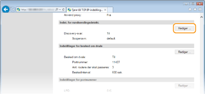 Markér afkrydsningsfeltet for at indstille maskinen til at reagere på pakker til registrering af multicast for software til styring af enheder og aktivere overvågning ved hjælp af software til styring af enheder. [Scopenavn]