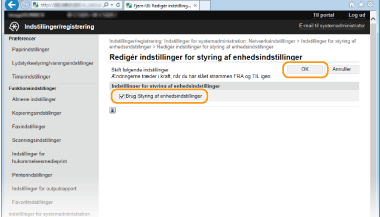 [Indstillinger for styring af enhedsindstillinger].