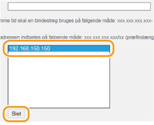 Marker en IP-adresse, og klik på [Slet]. ![]() |